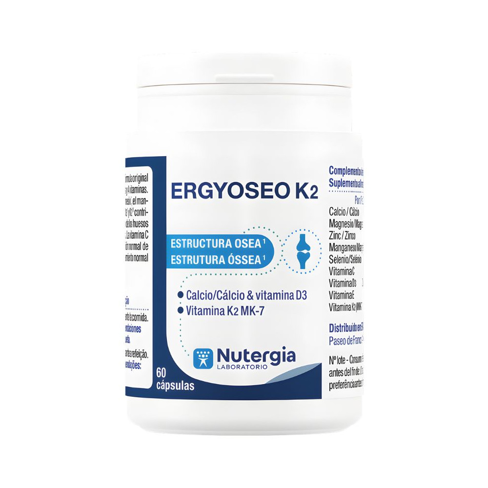 Carbonate de calcium, vitamine C (L-ascorbate de calcium), oxyde de magnésium, agents caryogènes : mono- et diglycérides d’acides gras ; vitamine K2 (ménaquinone MK-7), citrate de calcium, gluconate de zinc, antiagglomérant : stéarate de magnésium d’acide gras ; vitamines E (succinate d’acide D-alpha-tocophérol) et D3 (cholécalciférol), sélénite de sodium, gluconate de manganèse. Capsule végétale (hydroxypropylméthylcellulose).