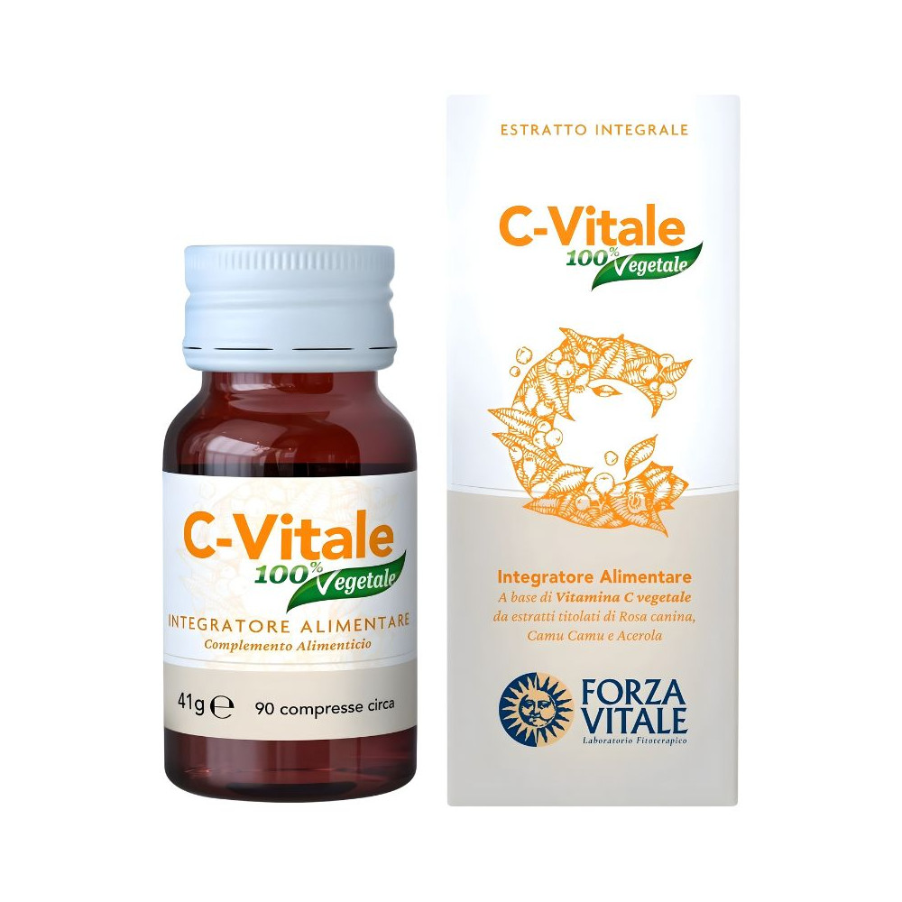 Fruit de rose canine (Rosa canina L.) standardisé à 70 % de vitamine C, bioflavonoïdes d'agrumes (Citrus maxima, Citrus paradisi, Citrus aurantium var. dulcis) (standardisé à 60 % des bioflavonoïdes totaux calculés en spéridine), fruit d'acérola (Malpighia punicifolia L.) standardisé à 50 % de vitamine C, fruit de camu-camu (Myrciaria dubia (HBK) McVaugh) standardisé à 25 % de vitamine C, racine d'astragale (Astragalus gallinaceus) standardisée à 16 % de polisacraires, fruit de myrte noir (Vaccinium myrtillus L.). Antiagglomérants : cellulose microcristalline, stéarate de magnésium végétal, biosoxyde de silicium.