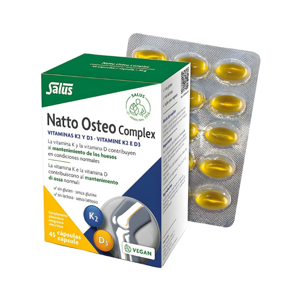 Huile de lin, vitamine K2 (ménaquinone), vitamine D3 végétale (cholécalciférol), amidon de gélatine de tapioca, agent hydratant (glycérol).